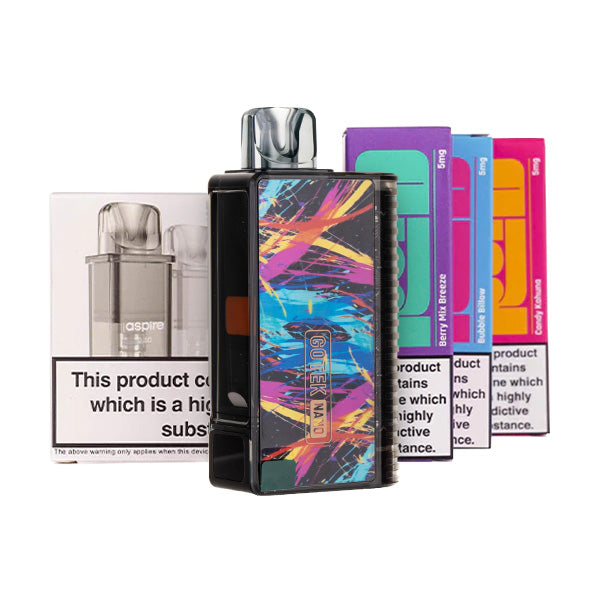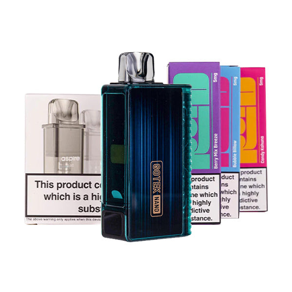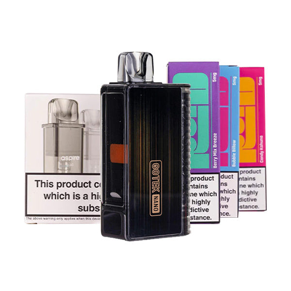 - Aspire Gotek Nano Device: Compact, sleek, and equipped with a rechargeable 1000mAh battery for extended use.