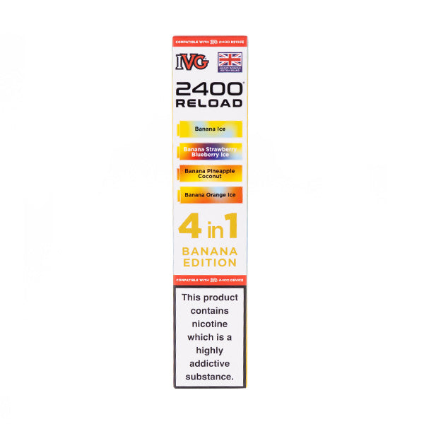 The Banana Edition IVG 2400 Reload Replacement Pods are designed for use in the IVG 2400 Reload Prefilled Pod Kit. The Edition series features four pods, each with a unique flavour.