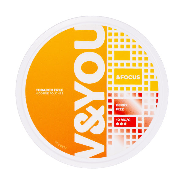 V&YOU nicotine pouches offer a smoke-free and tobacco-free solution to satisfying nicotine cravings. Berry Fizz &Focus delivers a rush of sweet summer berries followed by a tantalising lick of sherbet for a fruity and effervescent experience.