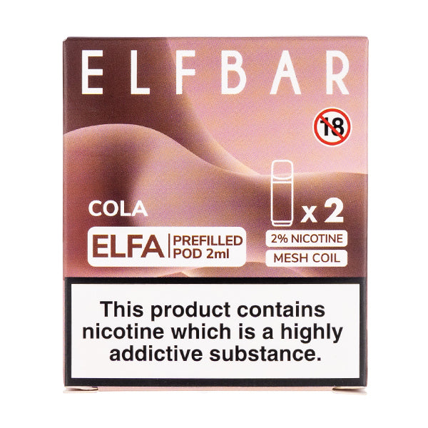 The Elf Bar Cola Prefilled Pods are designed for the use with the Elf Bar Elfa pod kit only. Enjoy flavours sparkling flavours of cola with subtle hints of caramel and nutmeg throughout.