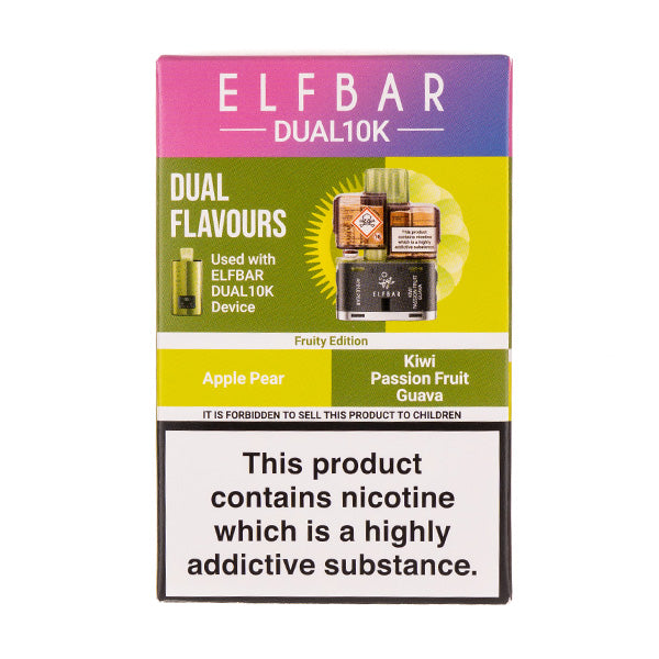 The Fruity Edition Dual 10k Refill Pack by Elf Bar is a tropical tang with a juicy and fresh mix, compatible with the Elf Bar 10k Prefilled Pod Kit.