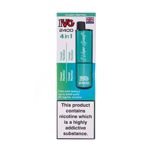 If you enjoyed the IVG 2400 disposable vape, IVG has you covered just ahead of the disposable ban. The IVG 2400 Prefilled Pod Kit is just like the disposable but better as it can be recharged and uses replaceable prefilled pods! Straight out of the box, you can expect up to 2400 puffs as this kit houses four 2ml prefilled pods which are filled with 20mg of IVG’s greatest flavour profiles. With 74 flavours to choose from, you’re guaranteed to be spoilt for choice. A 1750mAh built-in battery ensures longevity and extended vaping sessions without the worry. Let’s delve into some more detail.