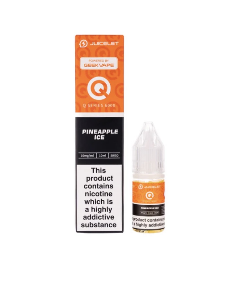 The Pineapple Ice Q Series 6000 Nic Salt E-Liquid by Juicelet delivers juicy notes of exotic pineapples & refreshing ice. Escape to a world of flavour with this sweetly flavoured e-liquid.